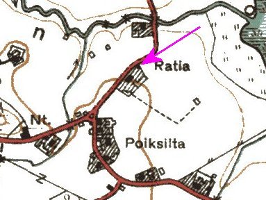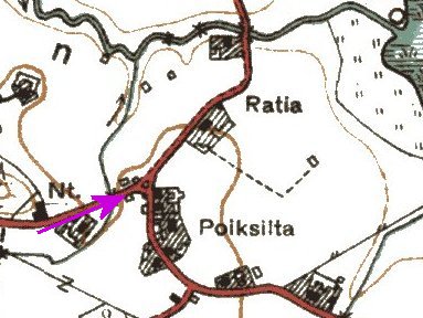 Osuuskaupan kohdalta risteykseen.