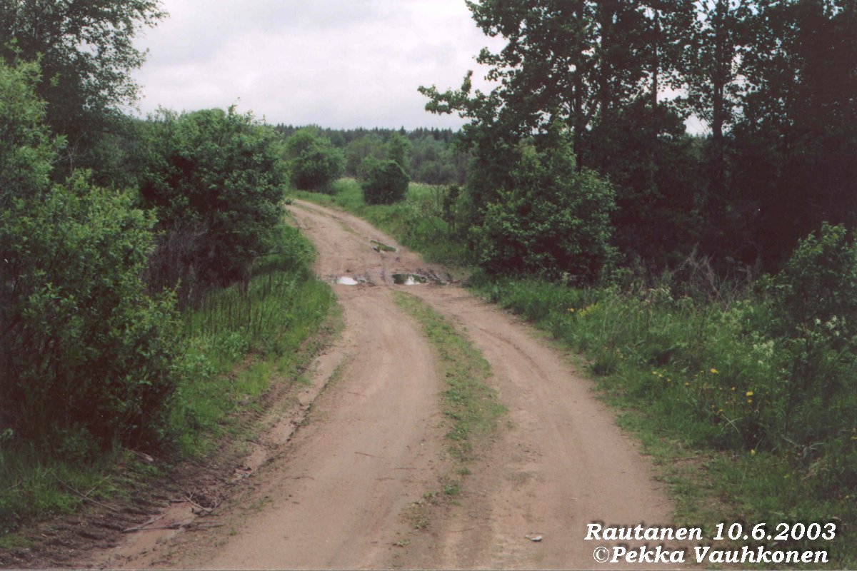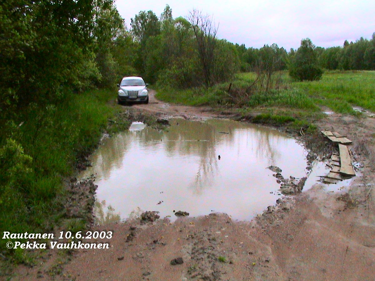 Kuvia Rautaselta 10.6.2003 iltapäivällä(Pikkukuvaa "napauttamalla" tulee isompi)Rautaselle pääsi edelleen autolla Humaljoen ja Kolkkalan kautta. Kostean alkukesän johdosta oli tie tosin paikoitellen tosi huono. Perillä ollaan. Huomaa tien kunto.